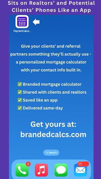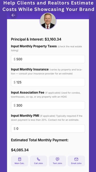 搜索关键词 branded mortgage calculator, realtor tools, mortgage app, loan officer marketing, financial calculator优势 Personalized with photo and contact info,Shareable with realtors and clients,Saves to phone like an app,Fast monthly payment calculations