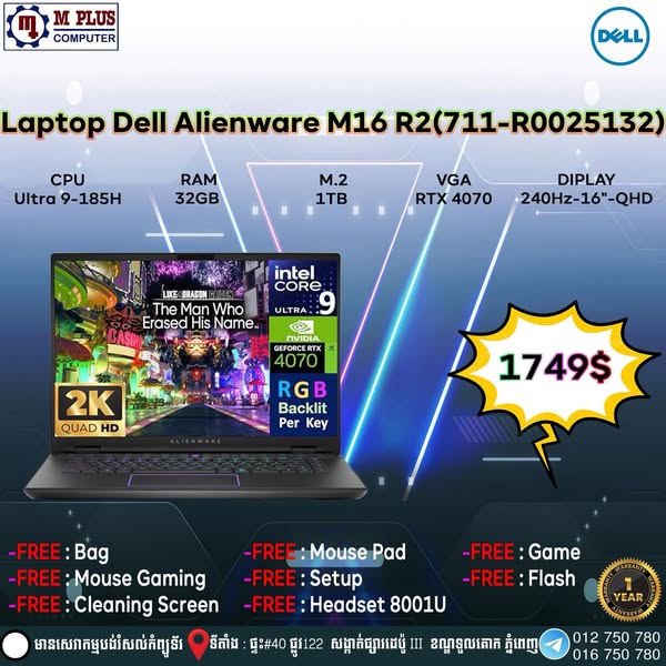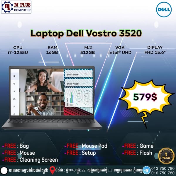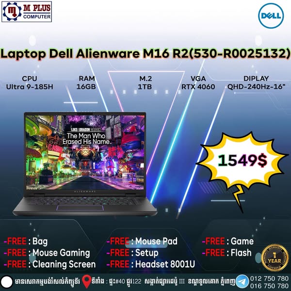 搜索关键词 Dell Alienware Laptop, Gaming Laptop Deals, Computer Installment Plan, Phnom Penh Computer Store, IT Design Laptops, Affordable Laptops Cambodia, Computer Repair Service, Dell Vostro Prices, XPS Laptop Promotion, Mplus Computer优势 Good price,Suitable for Office work, IT studies, design, and gaming,Installment plan available,Free software installation and multiple gifts,1-year warranty,Delivery service available in 25 provinces/cities,Custom computer assembly service