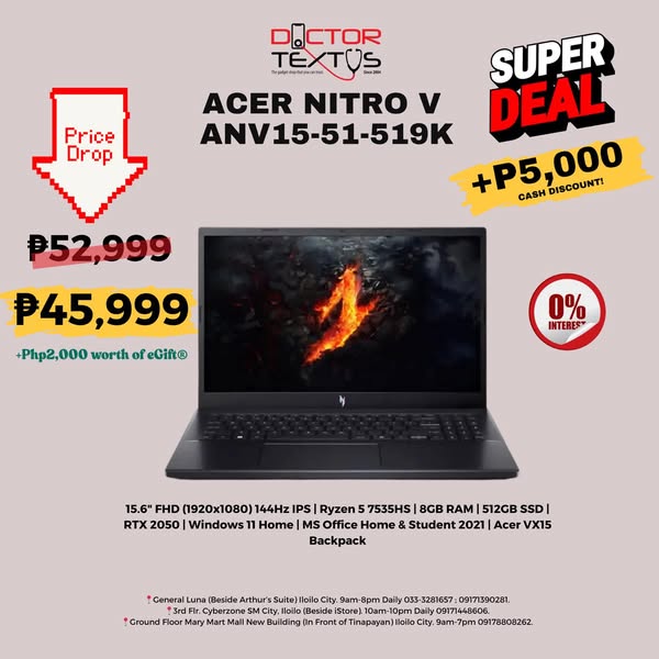 #acer #backtoschool #BackToSchool2025 #laptopsale #laptop #laptoprepair #laptopsale #LaptopDeals #IloiloCity #iloilo #ILOILO #DoctorTextus #acernitro #AcerNitro5 #AcerNitroV15 #acer #Acer #AcerLaptop