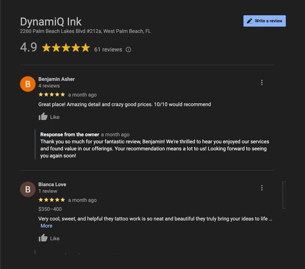 🎁 $499 = 8 Hours Tattoo Work - Looking for the perfect gift? DynamiQ Ink Tattoo Studio in West Palm Beach has you covered.