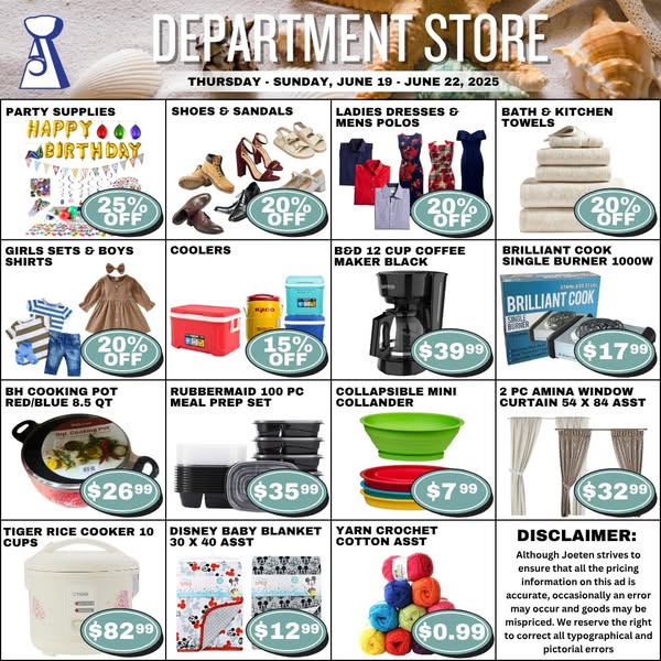 Get ready for a sizzling start to summer with 4 DAYS of hot deals and cool savings—only at Joeten! 🛍️😎 From Thursday to Sunday, June 19–22, score big on everything from summer essentials to household must-haves, snacks, fashion, and more. 🌴🍉🕶️ Don’t miss your chance to kick off the season with savings you’ll love!