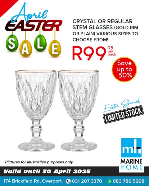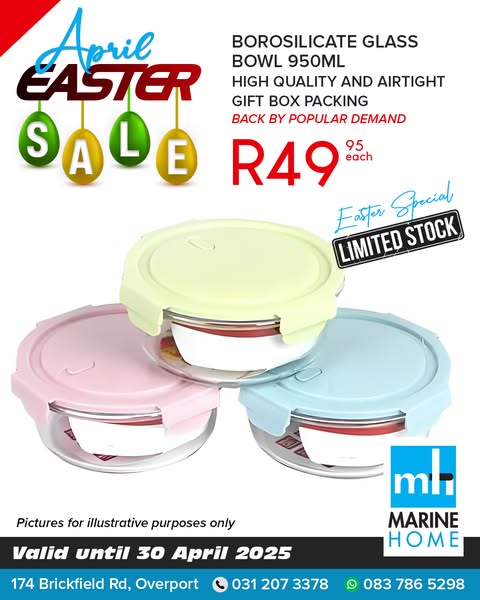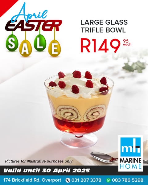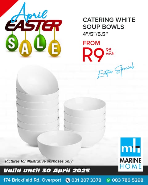 搜索关键词 Easter sale, Durban homeware, catering essentials, kitchen must-haves, Marine Home deals, home goods, April promotion, in store only, home and kitchen, brickfield road优势 Deals you won't want to miss,Wide range of products (catering essentials, homeware, kitchen must-haves)