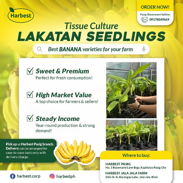 搜索关键词 Saba Banana Seedlings, Lakatan Banana Seedlings, Profitable Farming, Banana Farming Philippines, Harbest Agribusiness, Banana Crop Investment, High Yield Bananas, Ready to Plant Seedlings, Banana Farming Business, Philippines Agriculture优势 High market demand for Saba and Lakatan bananas,Steady income potential,Consistent harvests year-round,Strong and resilient banana varieties,Ready-to-plant high-quality seedlings
