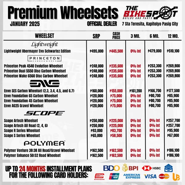 💎 JANUARY 2025 UPDATED PRICE LIST: Premium Wheelsets 💎