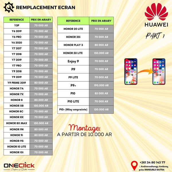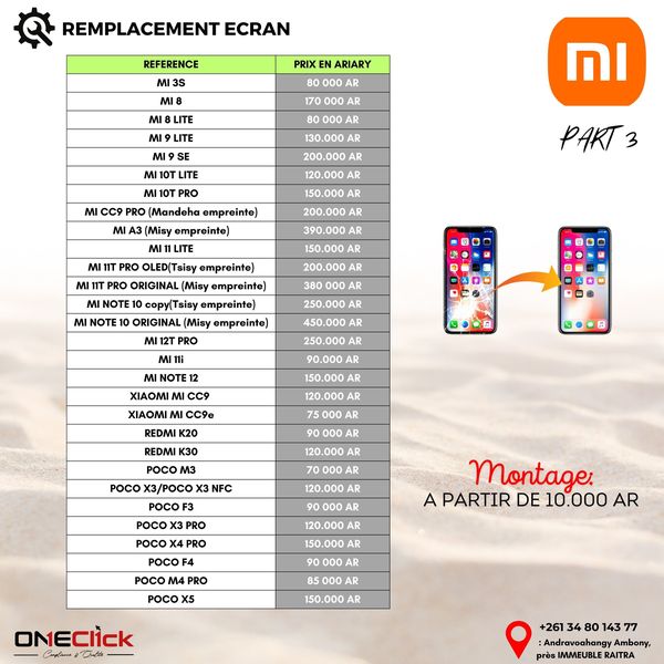 搜索关键词 phone screen repair, screen replacement service, iPhone screen repair, Huawei screen repair, Xiaomi screen repair, Madagascar phone repair优势 Wide range of supported phone models,Screens available immediately,Clear pricing information