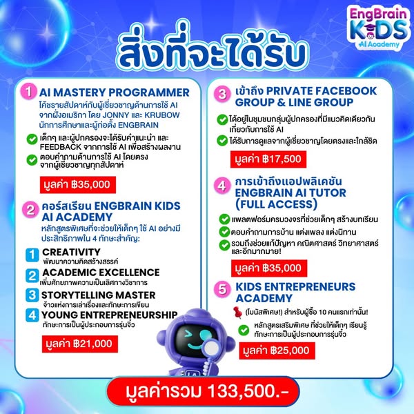 💡EngBrain Kids AI Academy –ให้ลูกก้าวทันอนาคต ใช้ AI เป็นก่อนใคร! 🚀