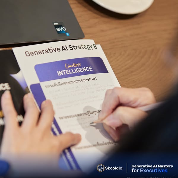 💡 ผู้เรียนได้ลงมือคิดและวางแผนผ่าน Generative AI Strategy Blueprint for Executives เครื่องมือเฉพาะที่ออกแบบมาเพื่อผู้นำโดยเฉพาะ พร้อมเทคนิคการนำเทคโนโลยีอย่าง ChatGPT, Notebook LM, และ Google AI Studio มาปรับใช้กับธุรกิจ