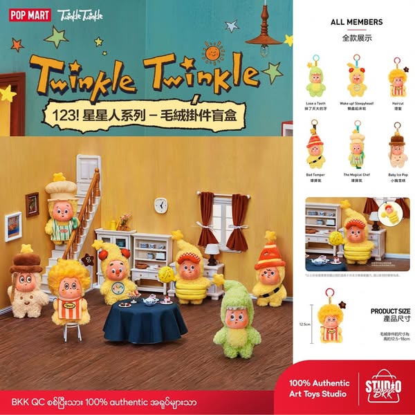 搜索关键词 pop mart, plush toys, authentic toys, surprise gift, quality toys, studiobkk, gift service, Myanmar, toy collection, BKK优势 100% Authentic,High Quality,In-stock,Surprise gift option available,Pick-up service