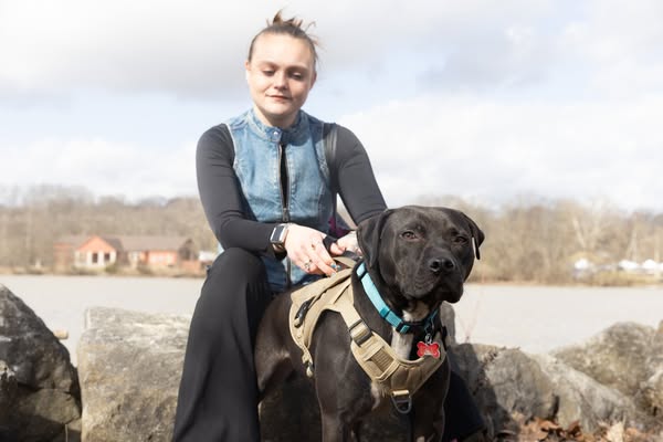 Shortly after moving out of her childhood home, Hope S. was at the CRC looking for a new companion. She met Rockstar and immediately had a strong connection with him. There are some misconceptions surrounding dogfighting victims, and, like with all our adoptables, our staff thoroughly explained Rockstar's background to Hope. She was not concerned and brought him home that very same day! Although he was anxious that first week, Hope did all she could to make him feel welcome. Now, Rockstar is settled into his first-ever loving home and is showing off his personality quirks more and more. Hope has started running with Rockstar and is working on training with him, which she loves to do! Hope notes, "[Rockstar] doesn't have an angry bone in his body, he's just a happy little boy. He has completely changed my life."