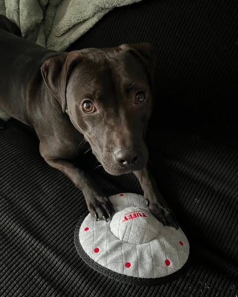 Albeit fearful of his environment and walking on a leash, Rockstar stood out for being a calm and gentle boy from the start. In fact, he loved people and other dogs so much that those became his biggest motivators for working through his fear! Soon enough, Rockstar became comfortable on a leash and exploring new places. He was so good with other pups that he even became a helper dog, where his job was to help bring out the playful side of more fearful or shut-down dogs. After a lifetime of being chained up, Rockstar made leaps and bounds with our staff at the CRC, and all that was left was to find him his paw-fect adopter.