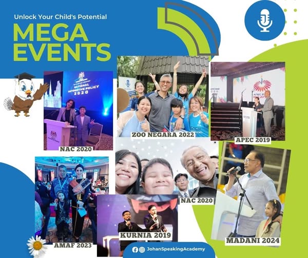 🏆 Johan Speaking Academy: A Kids Public Speaking company established since 2014 with signature Speaker Warrior Program , featured on 10 media channels including Didik TV, Bernama TV, The Star, RTM 1, and others. Our students have graced prestigious stages such as KLCC, Midvalley, Zoo Negara, Gardens Theatre, Pavilion Bukit Jalil, Lost World of Tambun, and more!