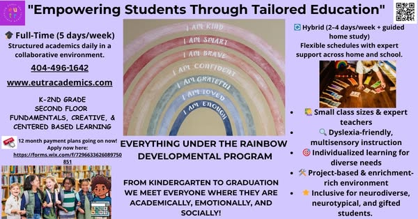 Everything Under the Rainbow appreciates our community! We are always receiving amazing contributions from our community, our partners, and our families. We have twelve month plans for our families to provide more resources for them as they transition from public to a more private feel. eutracademics.com is our NEW AND IMPROVED WEBSITE!