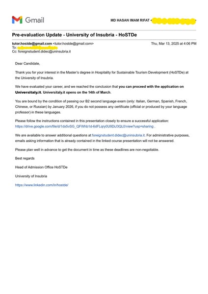 We are thrilled to announce that one of our exceptional students has received an offer letter from the renowned Polytechnic University of Marche! This is a fantastic achievement and a testament to their talent and perseverance. Congratulations! We can't wait to see all that you accomplish.