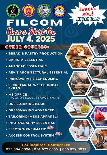 搜索关键词 Filcom KSA, Jeddah Saudi Arabia, Education Classes, Professional Growth, Friday Classes, Training Jeddah, Development Courses, Saudi Arabia Training, Weekend Learning, Skills Development优势 Opportunity for growth,Turns Friday off into a productive day,Convenient location in Jeddah, Saudi Arabia
