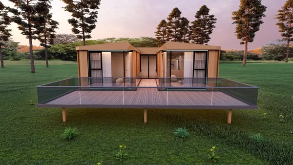 This affordable and easy-to-build home arrives in two pieces that can be assembled in just one day. Constructed from steel channels with an aluminum body and double-glazed glass, it meets the Australian Building Code—one of the world’s highest standards. It includes all kitchen appliances, automatic curtains and blackout blinds, projector screens, and four ducted air conditioning units. This three-bedroom home has a bathroom, an additional toilet, a spacious open kitchen, and a lounge. Add a deck, carport, and container pool, and you’ll have everything you need—perfect as either an investment or a home. Maintenance is minimal; the interior takes about twenty minutes to clean, and the rain naturally cleans the exterior.