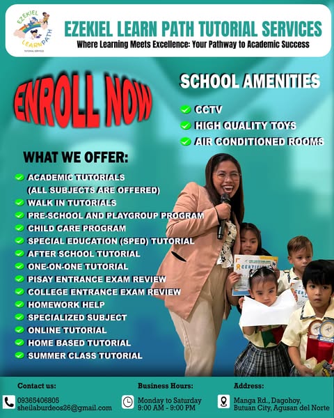 搜索关键词 Summer Classes, Tutorial Services, Education Philippines, Skills Development, Summer Learning, Butuan City, Barangay Dagohoy, ARQ Builders, Ezekiel Learn Path, Learning Success优势 Engaging learning experiences,Skills boosting,Future preparation