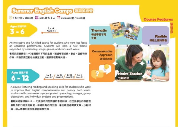 搜索关键词 summer classes, playgroup, English classes, phonics, Tai Kok Tsui, kids education, summer activities, children courses, discount education, English tutoring优势 Discounted Price (up to 20% off),Wide Age Range (2.5-12 years),Variety of Classes (English, Phonics, Playgroup)