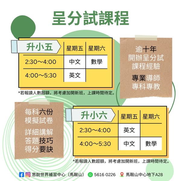 暑期專科班🔶暑期呈分試卷班🔶暑期中英數加油站