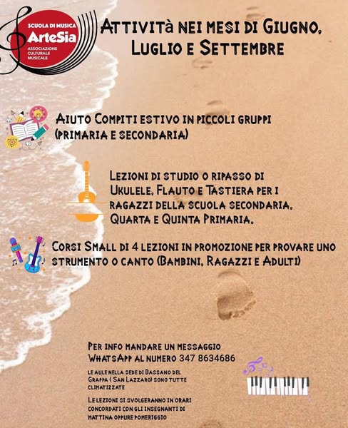 搜索关键词 San Lazzaro party, summer courses, music event, community event, Bassano summer programs, Artsia ONCE UPON A VOICE, air conditioned classrooms, educational services, local event, register now优势 Community event,Summer course enrollment opportunity,Air-conditioned classrooms
