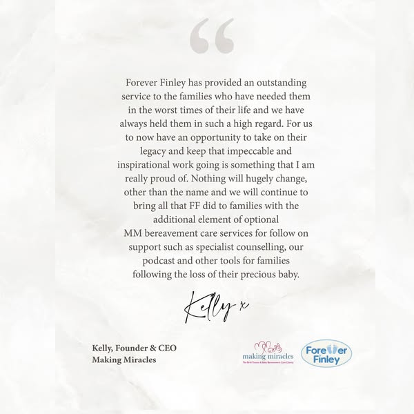 📣 Over the last few weeks we have been working closely with another wonderful baby loss charity Forever Finley.