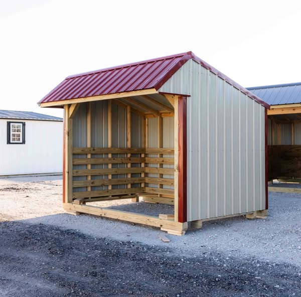 This 12x24 animal shelter is a standard, open-design structure with durable metal siding. Featuring a striking rustic red and black color combination, it provides ample space and protection for livestock. With no gates or stall dividers, it offers a flexible layout for various animal care needs while maintaining a simple and functional design. Price As Shown: $6,185 60 Month RTO Payment: $245
