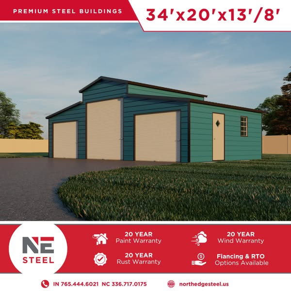 搜索关键词 Ag Barn, Agricultural Building, Roll-up Garage Doors, Hawaiian Blue Siding, Metal Barn, Farm Storage, Barn Construction, Durable Barn, Walk-in Door, Barn Features优势 Multiple roll-up garage doors,Walk-in doors,Windows for natural light,Durable 14 gauge framing,Aesthetic Hawaiian Blue siding