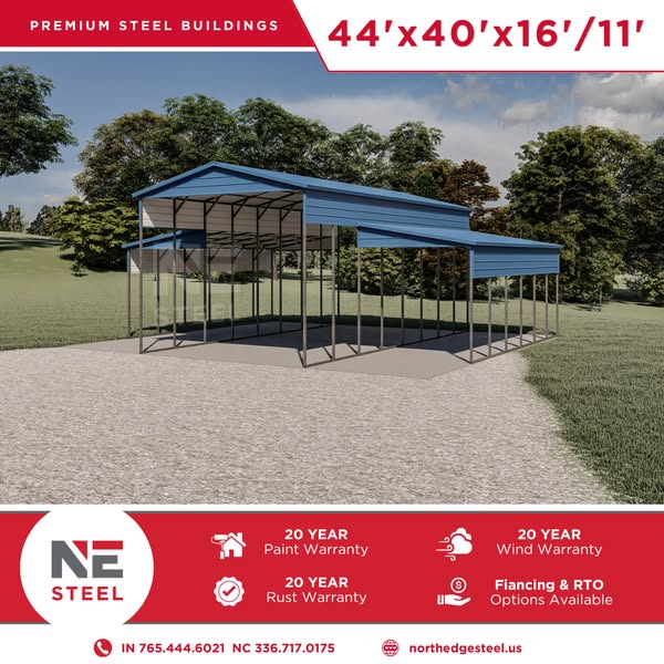 This Ag Barn feature’s 3 roll-up garage doors, 2 walk-in door, 2 windows, Black a-frame vertical roof, Black trim, 29 gauge Hawaiian Blue siding, and 14 gauge framing.