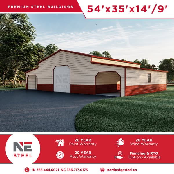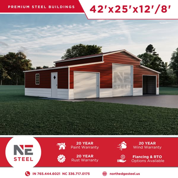 搜索关键词 Ag Barn, Agricultural Building, Garage Doors, Walk-in Door, Metal Building, Hawaiian Blue siding, A-frame Roof, outdoor storage, farm storage, construction solution优势 Multiple Garage Doors,Walk-in Doors,A-Frame Roof,Customizable Features