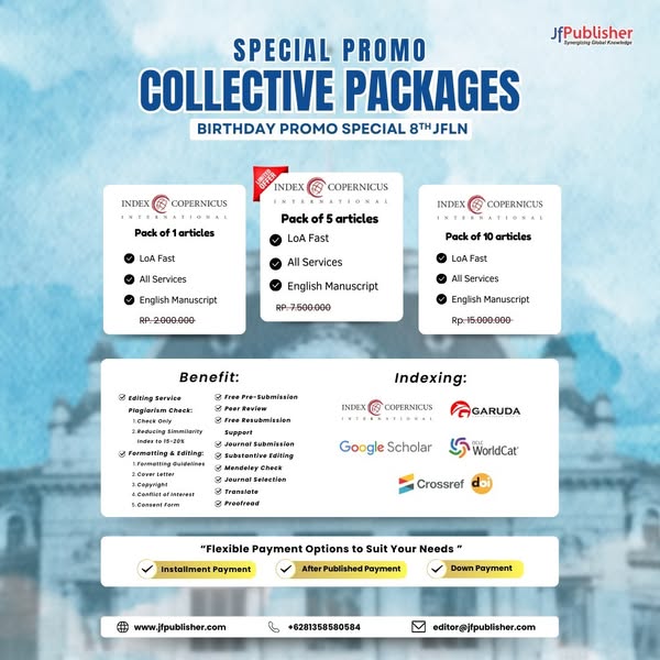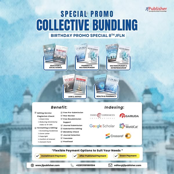 JF Publisher membuka kesempatan bagi akademisi dan peneliti untuk menerbitkan artikel di jurnal internasional.