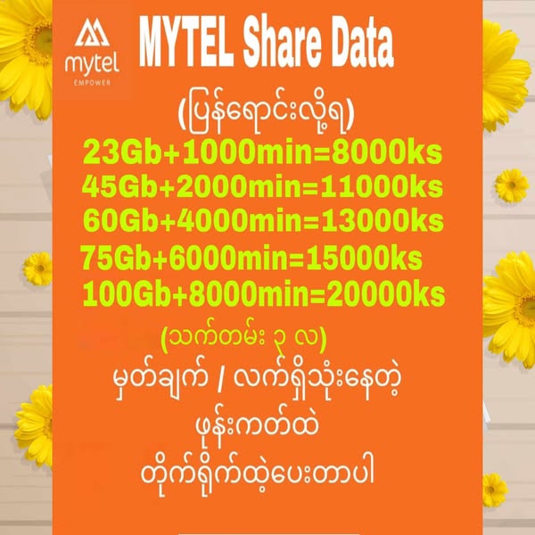 ဒေတာဝယ်ရင်း လက်ဆောင်GB တွေပါရယူလိုက်ပါနော်23Gb+1000min=8000ဝယ်ယူသူတိုင်းအတွက် 5Gb လက်ဆောင်