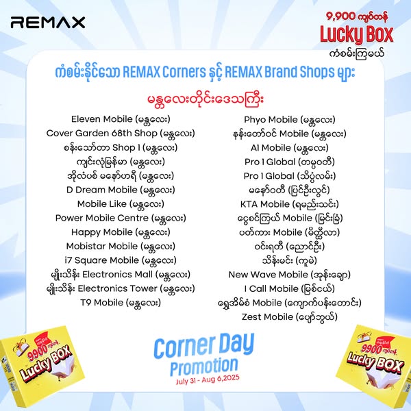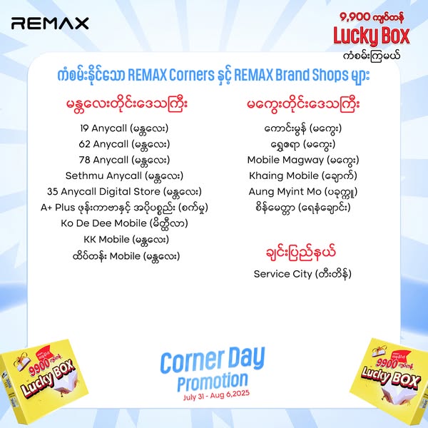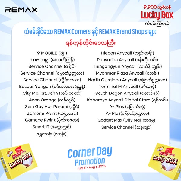 REMAX Corners တွေမှာလည်း Lucky Box ကံစမ်းလို့ ရပြီဗျို့ ... 📢🎉
