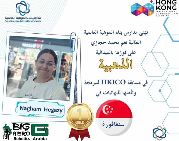 الف مبروك للطالبة نغم محمد حجازي من أكاديمية Big Hero Arabia بالميدالية الفضية على مستوى العالم في نهائيات