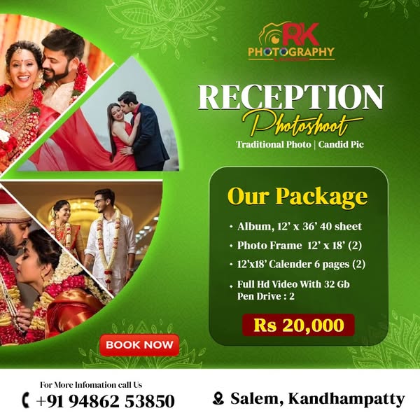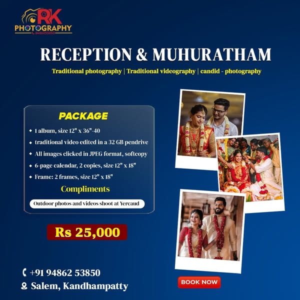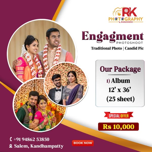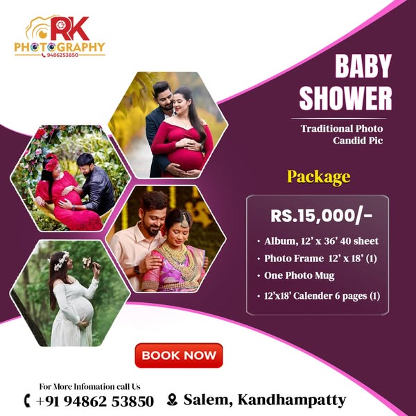 Celebrate life’s special moments with stunning photography and videography. From engagements to baby showers — we capture it all! Call RK Photography at +91 94862 53850 today!