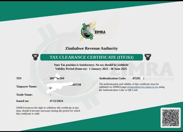 #NB TAX CLEARANCE PERIOD IS SUBJECTED TO YOUR LEVEL OF COMPLIANCE AND THE ZIMRA SYSTEM.