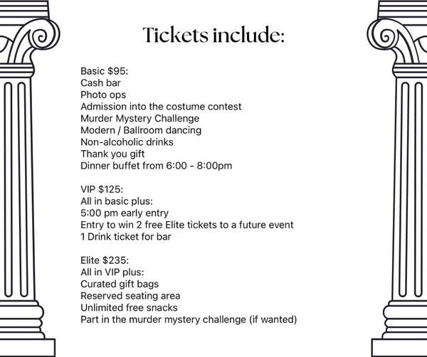 Join us for a thrilling night of mystery, mythology, and murder at the Hades Unknown Murder Mystery Dinner! 🏺✨ But hurry—tickets are limited, and once they’re gone, they’re gone!