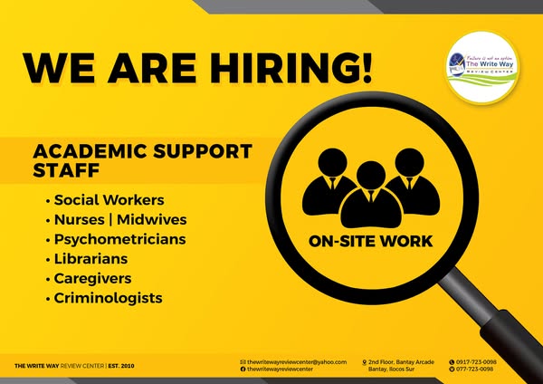 搜索关键词 review center jobs, education job opportunities, ilocos sur careers, write way review, passionate adaptable driven, supportive dynamic environment, career growth potential, team that values you, make an impact, the write job优势 Supportive environment,Opportunities for growth,Values individuals