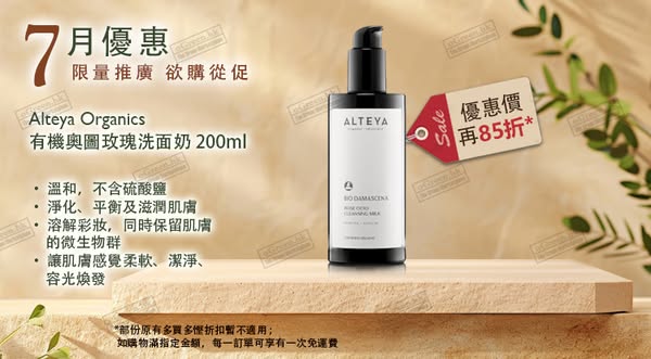 5. Alteya Organics, 有機奧圖玫瑰洗面奶 200ml (85折)