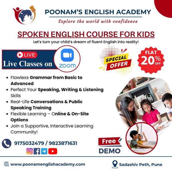 Join Poonam’s English Academy and experience the best offline and online Spoken English Classes. Learn grammar, vocabulary, conversation skills, and confidence-building techniques in a supportive environment.