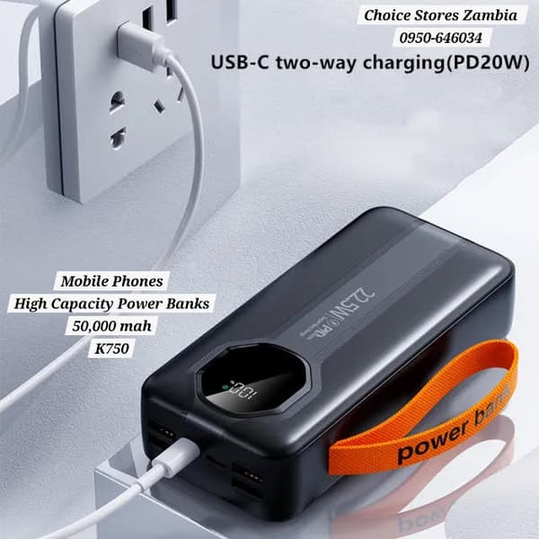搜索关键词 mobile power bank, power bank sale, large capacity power bank, fast charging power bank, iphone android power bank, lusaka delivery, affordable power bank, 50000mah power bank, phone charging, mobile accessories优势 Large Capacity,Universal Compatibility,Fast Charging,Overcharge Protection,Free Delivery,Payment After Delivery