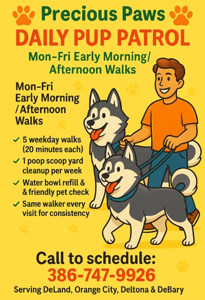 #VolusiaCountyServices #DeLandFlorida #PreciousPawsLLC #OneStopShop #Childcare #SeniorCare #PetCare #LawnCare #HomeServices #TrustedLocalBusiness #SupportSmallBusiness