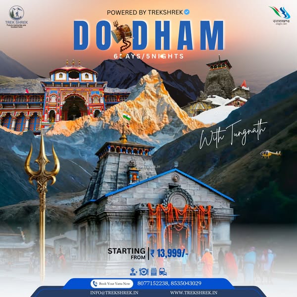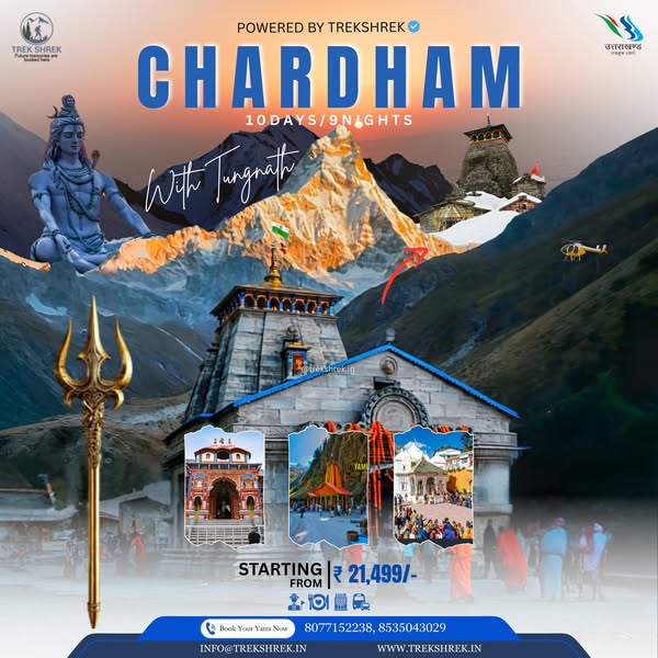 #CharDhamYatra #Kedarnath #Badrinath #Tungnath #Chandrashila #PilgrimageTour #SpiritualJourney #SacredTravel #HolyTrip #TempleTour #UttarakhandTour #TravelDeals #IndiaPilgrimage #AdventureTravel #TravelIndia #ExploreIndia #DivineExperience #TravelOffer #TravelNow #TrekShrek