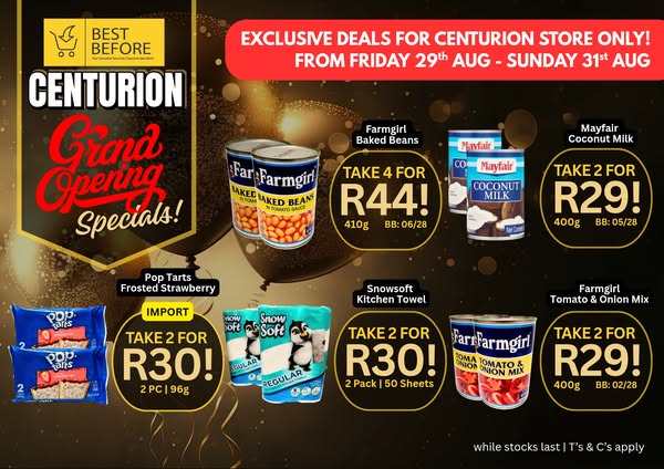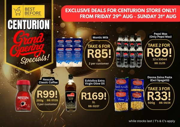 2 DAYS TO GO FOR BEST BEFORE CENTURION GRAND OPENING!!!! 🤩💥💃🏼🤩💥💃🏼 TAKE A LOOK AT THESE SPECIALS WITH MANY MORE TO BE SEEN IN-STORE!!! 🥳🥳🥳🥳