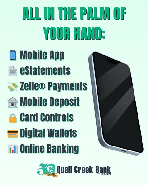 搜索关键词 QCB account perks, mobile banking features, online banking benefits, free atm rebates, secure online banking, easy bill pay, paperless statements, 24/7 bank access, mobile deposit options, debit card advantages优势 Online & Mobile Banking (24/7 access),Mobile Deposit (Snap a pic, skip the trip),Bill Pay (Easy online bill payments),eStatements (Paperless statements),Debit Card (Shop anywhere, anytime),ATM Rebates (Up to $25/month),All FREE with your account,Simple, Secure, and Stress-free Banking