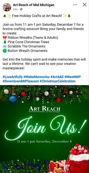 搜索关键词 Mid Michigan Christmas, Christmas events near me, Holiday events Michigan, Michigan Christmas activities, Local Christmas events, Family Christmas events, Christmas entertainment, Holiday season events, December Christmas events, Christmas celebrations优势 Comprehensive list of events,Easy to share,Direct access to event organizers