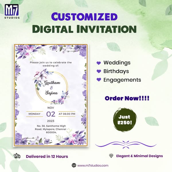 Beautifully designed invites, starting at ₹250!