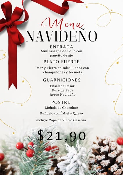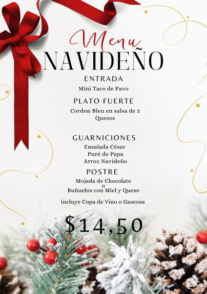 搜索关键词 Christmas dinner, christmas lunch, restaurant reservations, holiday meals, family celebration, azogues Ecuador, Lago de Ensueño, festive dining, christmas 2024, unforgettable christmas优势 Festive atmosphere,Special Christmas menu,Family-friendly,Convenient location near Azogues