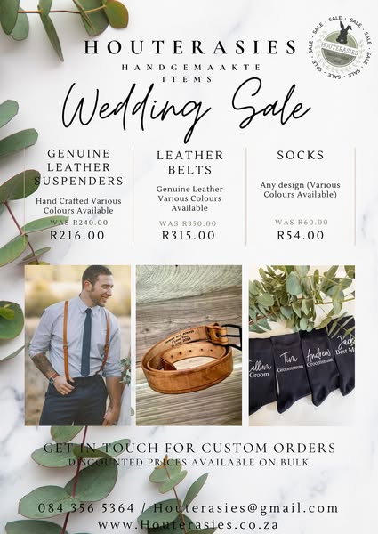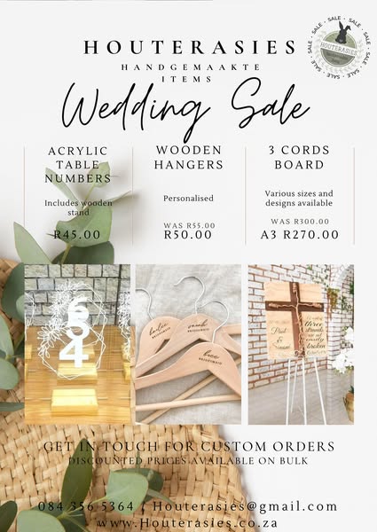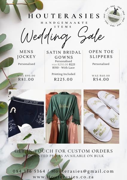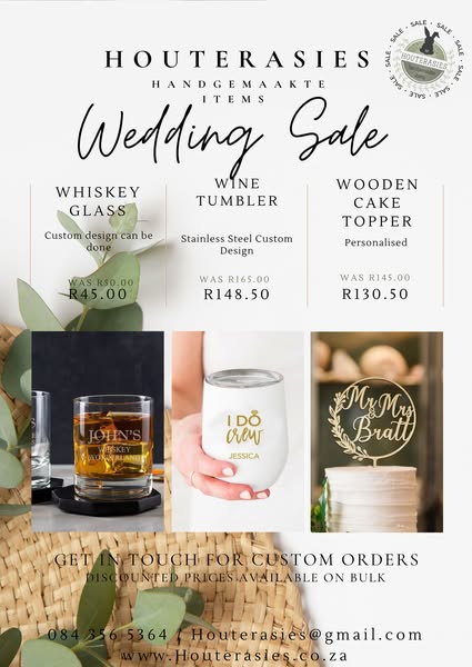 搜索关键词 Wedding Promotion, Custom Gifts, Wedding Decor, Bridal Party, Limited Time, Extended Sale, Houterasies Weddings, South Africa Weddings, Wedding Supplies, Wedding Treasures优势 Customizable gifts,Wedding decor,Bridal party treasures,Extended sale period
