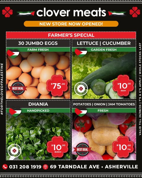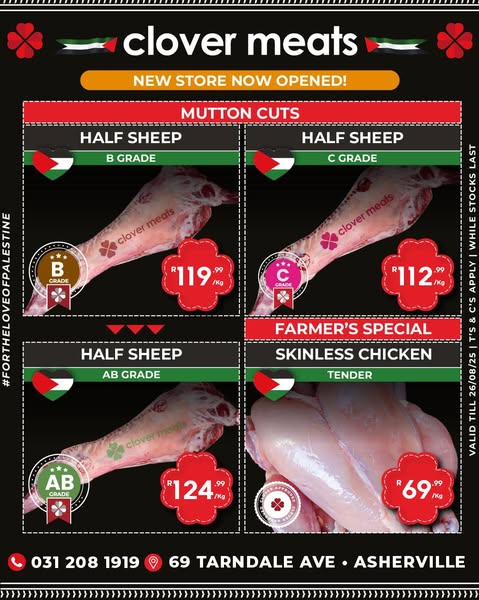 搜索关键词 Clover Meats Specials, Grand Opening, Fresh Meat, Limited Time Offers, Meat Discount, Asherville Meat Shop, Braai Meat, Chicken Deal, Steal Deal, Food Brings People Together优势 Unbeatable grand opening specials,Exclusive discounts,Limited-time offers,Fresh Meat