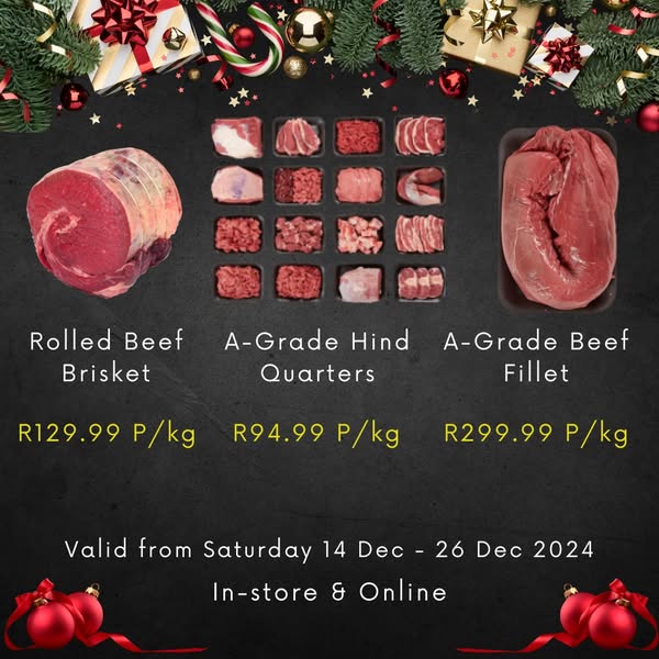 Festive feasting starts now! 🎄 Enjoy massive savings on your favorite cuts at Good Hope Meat Hyper. Valid from 14-26 December 2024. In-store and online.