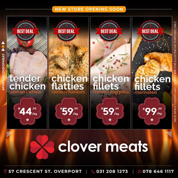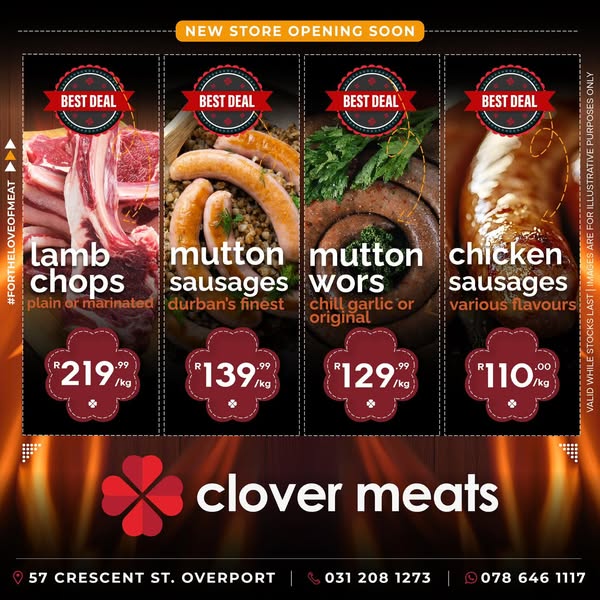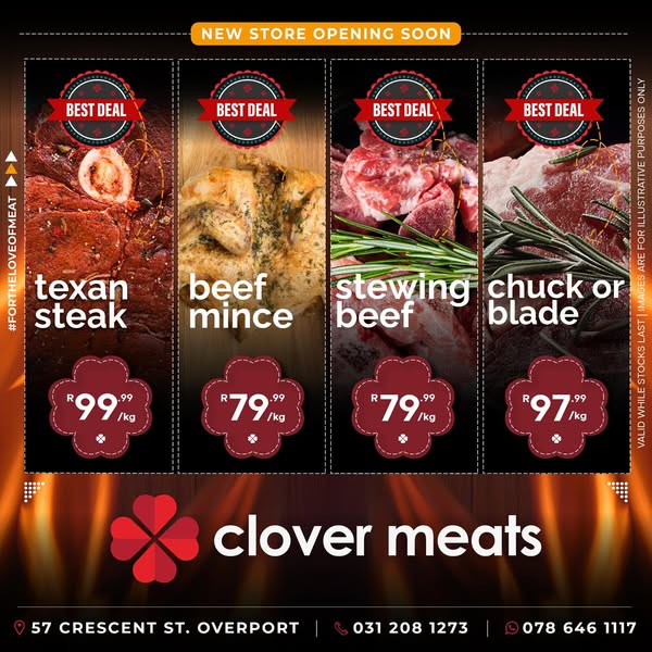 搜索关键词 clover meats, premium meat cuts, best price meats, south africa meat, meat order online, new year meat, meat promotion, crescent street meats, overport meats, whatsapp meat order优势 Premium Cuts,Best Prices,Convenient Ordering